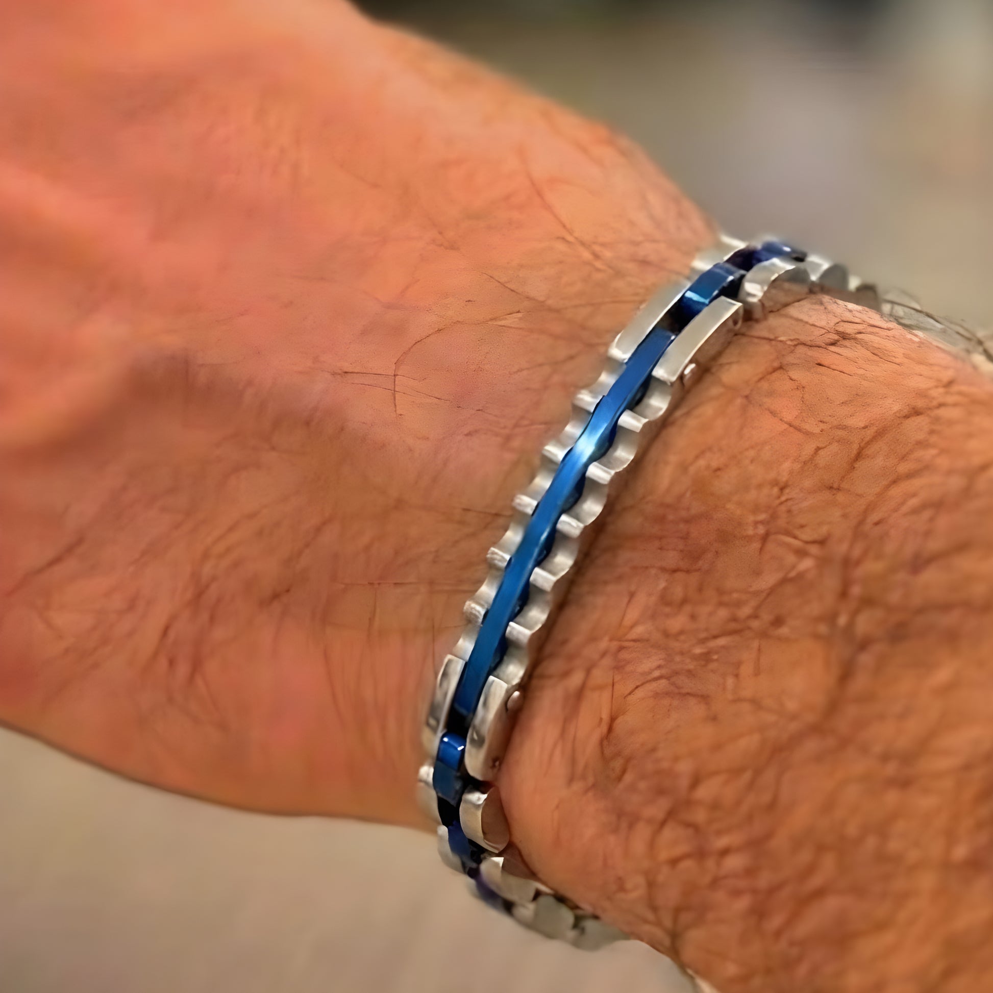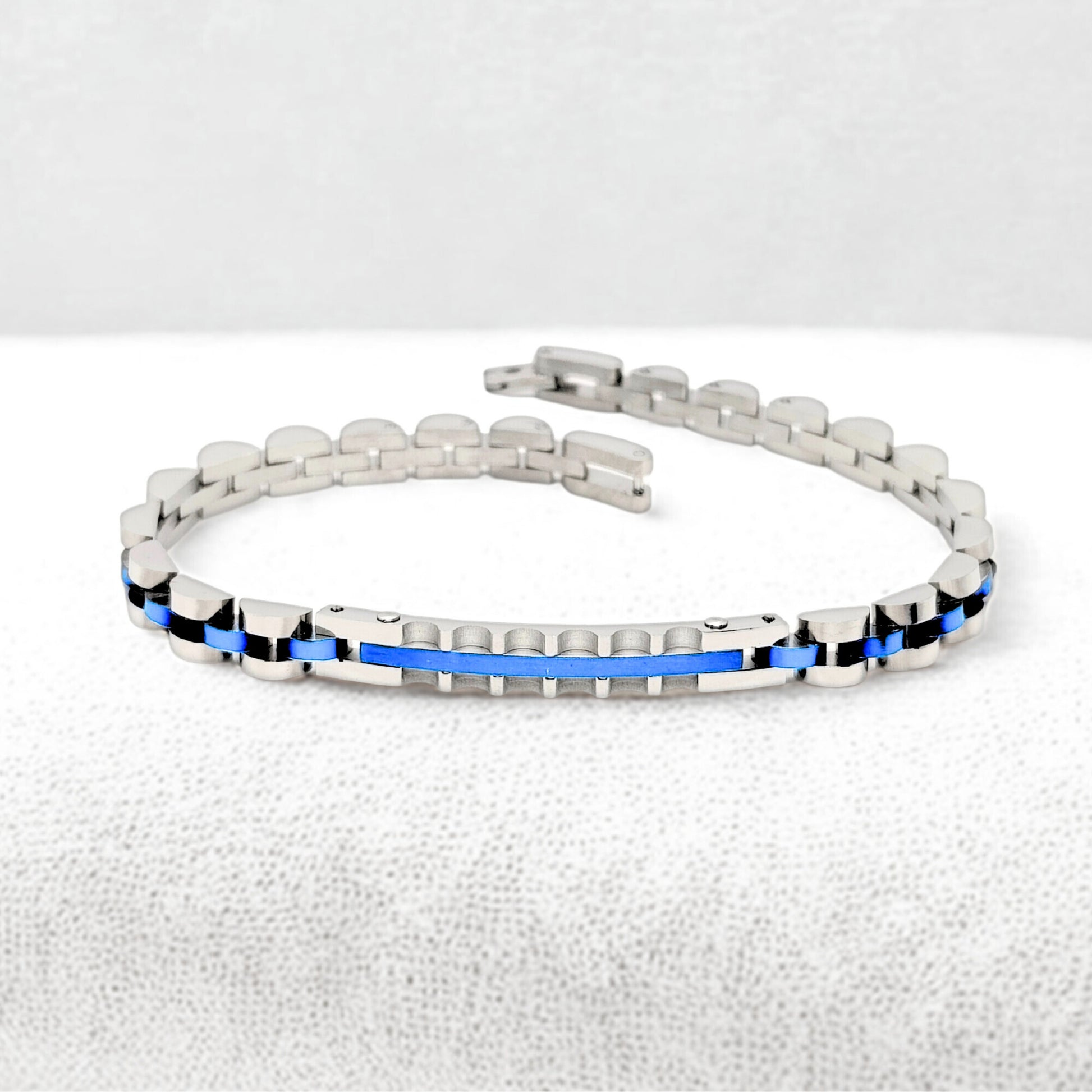 Two-Tone Silver & Blue Stainless Steel - B-39 Bracelet | Men's - Overpowered Accessories Egypt